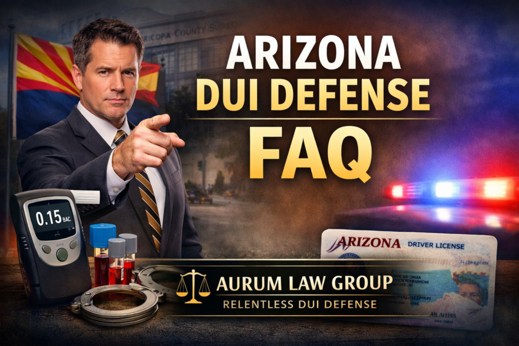 DUI defense Arizona DUI FAQ: Your Complete Guide to MVD Hearings, License Suspension, and DUI Defense | Aurum Law Group READ MORE